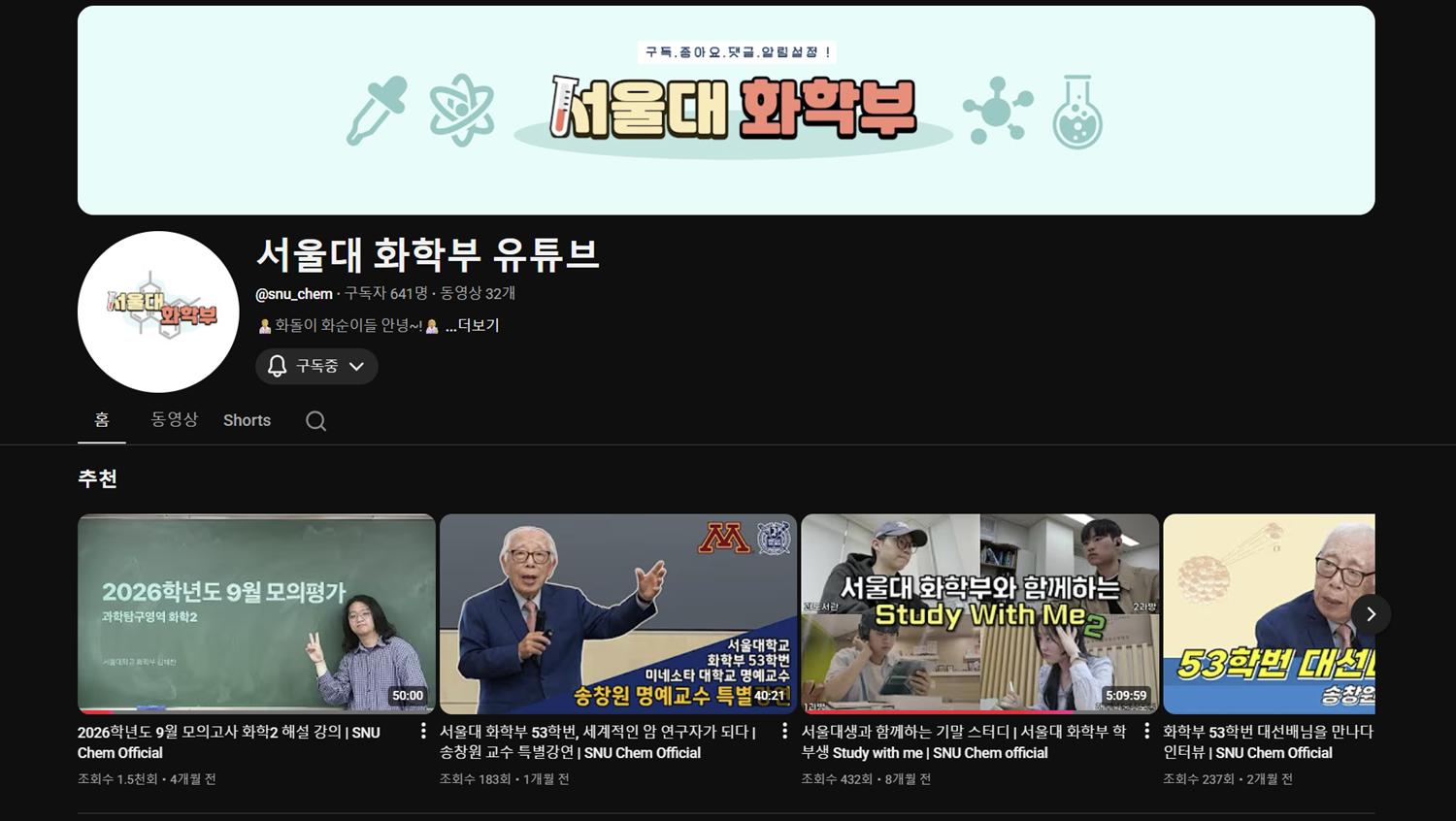 4. 화학부 공식 유튜브라고 말씀해주셨는데, 해당 채널의 소유는 CUT인가요? 아니면 화학부가 소유하고 CUT가 관리하는 형식인 건가요?