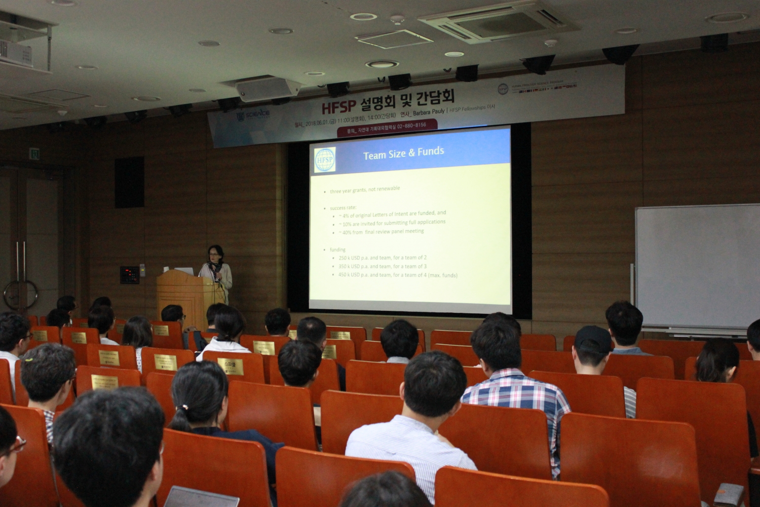 이번 HFSP 간담회에서는 8년째 HFSP의 Postdoctoral fellowship 이사로 계시는 Barbara Pauly 박사님이 연설을 해주셨다.