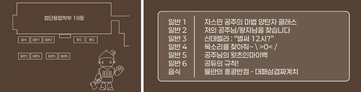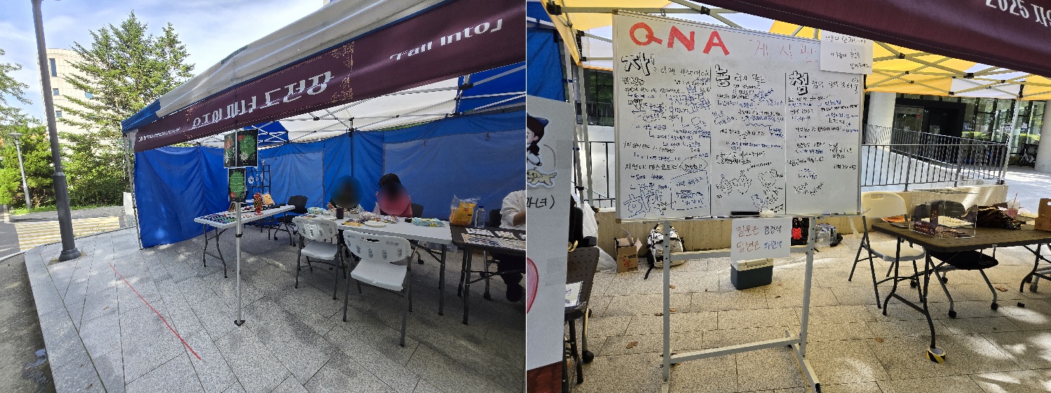 (좌) 학생회 부스 ‘너울’, (우) 칼시안 부스 ‘여우: 신포도였농’ (사진=조민정 기자)