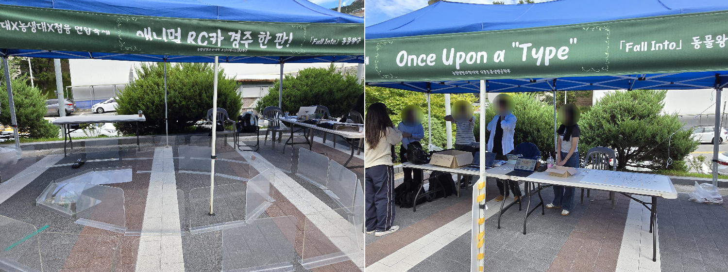 (좌) 조경지역시스템공학부 부스 ‘애니멀 RC카 경주 한 판!’, (우) 식품동물생명공학부 부스 ‘Once upon a “Type”’ (사진=조민정 기자)