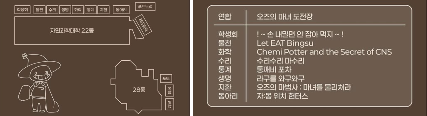 자연과학대학 부스 배치도 및 목록. (사진=인스타그램 @fall_into.snu)