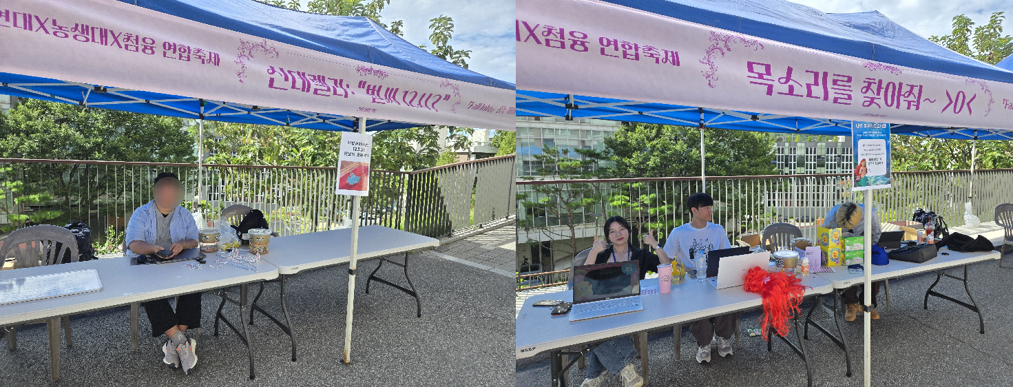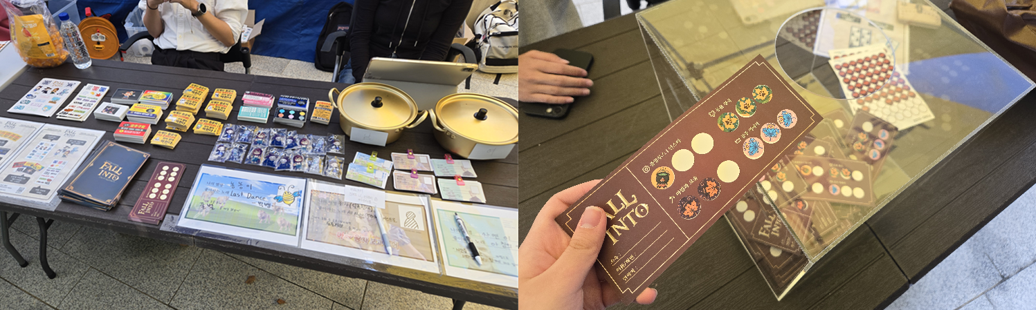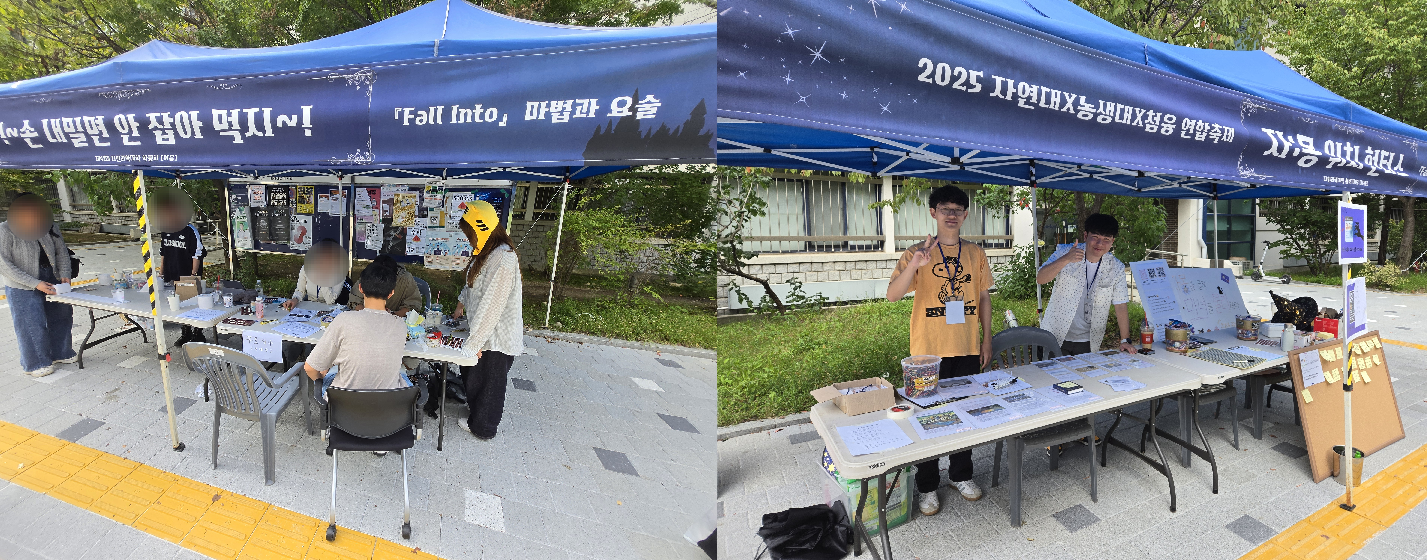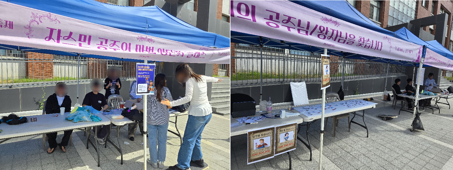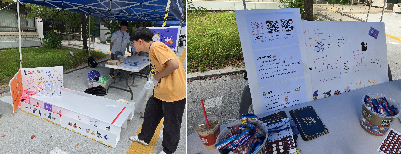 (좌) 학생회 [이음] 부스 ‘!~손 내밀면 안 잡아먹지~!’, (우) 동아리 자:몽 부스 ‘자:몽 위치 헌터스’ (사진=조민정 기자)