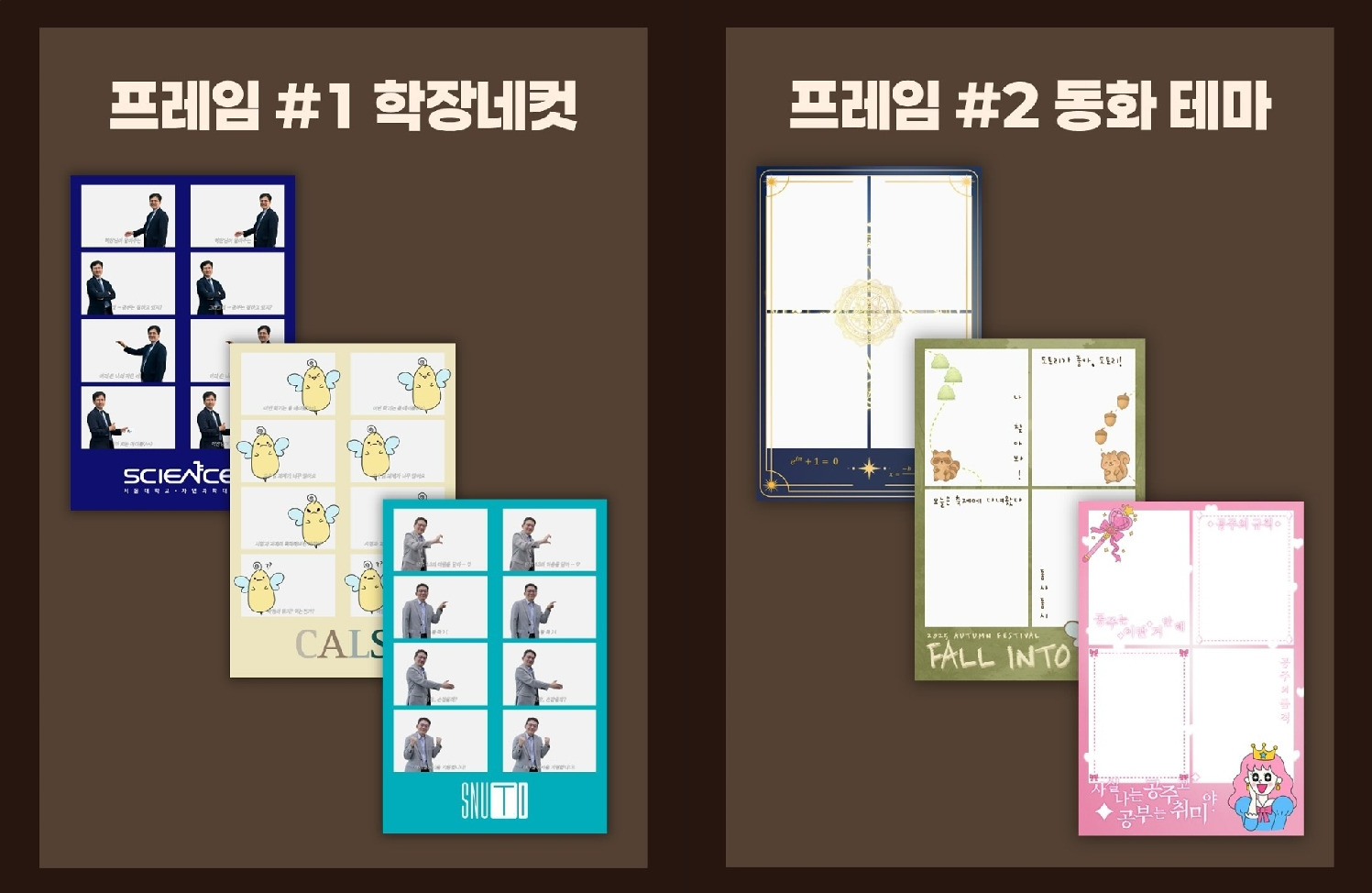 포토부스 프레임 ‘학장네컷’과 동화테마. (사진=인스타그램 @fall_into.snu)