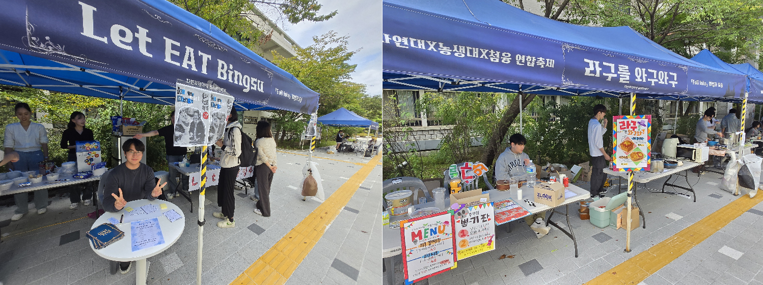 (좌) 물리천문학부 부스 ‘Let EAT Bingsu’, (우) 생명과학부 부스 ‘라구를 와구와구’ (사진=조민정 기자)