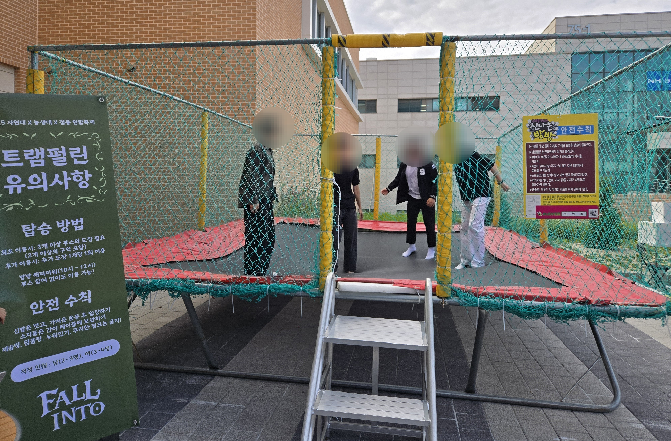 이외에도 구역 2개 이상에서 3개 이상 부스의 도장을 받으면 ‘방방’에 탑승할 수 있는 이벤트를 진행했다. 또한 방방 해피아워(오전 10시-오후12시)에는 부스 참여 없이도 이용 가능했으며, 추가 이용은 추가 도장 1개 당 1회 이용이 가능했다. 학생들이 신나게 ‘방방’에 탑승한 모습을 볼 수 있었다.