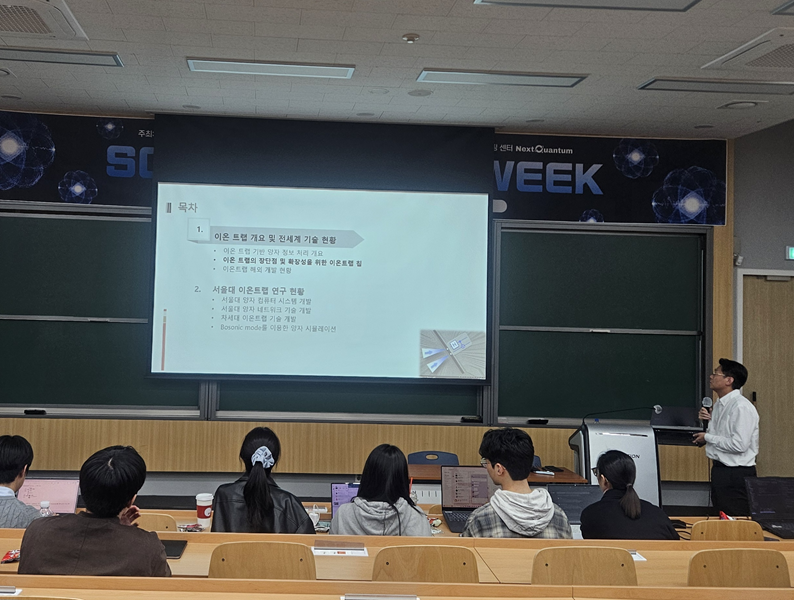 그 뒤로 2일간 서울대학교 교수님들의 총 4개의 강연이 이어졌다. 박채연 교수는 양자컴퓨터가 고전 컴퓨터보다 더 높은 성능을 보인다는, 양자 이득을 수식적으로 보여주는 내용을 강연하였다. 김은종, 김도헌, 김태헌 교수는 각각 본인들의 연구 분야인 초전도 큐빗, 반도체 스핀 큐빗, 이온트랩 양자컴퓨팅에 대한 특강을 진행하였다. 양자컴퓨팅 플랫폼들의 역사부터 최근 연구 동향, 각각의 연구실의 성과 및 현재 진행되고 있는 프로젝트 등 양자컴퓨팅에 대한 시아를 넓이는데 많은 도움을 주는 내용들로 이루어져 있었다.